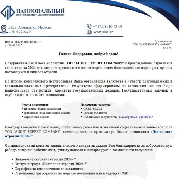 Audit Expert — команда профессионалов, предоставляющая комплексные аудиторские и консалтинговые услуги. Работаем с госорганами, корпорациями и бизнесом по всему Казахстану.